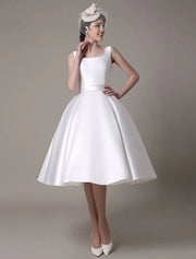 A-Line Cocktail Dresses Party Dress Graduation Wedding Guest Knee Length Sleeveless Square Neck Satin with Pleats