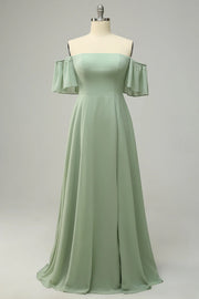 A Line Off the Shoulder Long Bridesmaid Dress with Ruffles