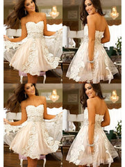 A-Line/Princess Sleeveless Sweetheart Applique Tulle Short/Mini Dresses Cocktail Dresses