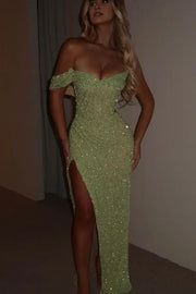 Charming Sheath One Shoulder Sequins Long Formal Prom Dress Sparkly Evening Party Gowns Sexy Graduation Dress with Split - US 2 / UK 6 / EU 32
