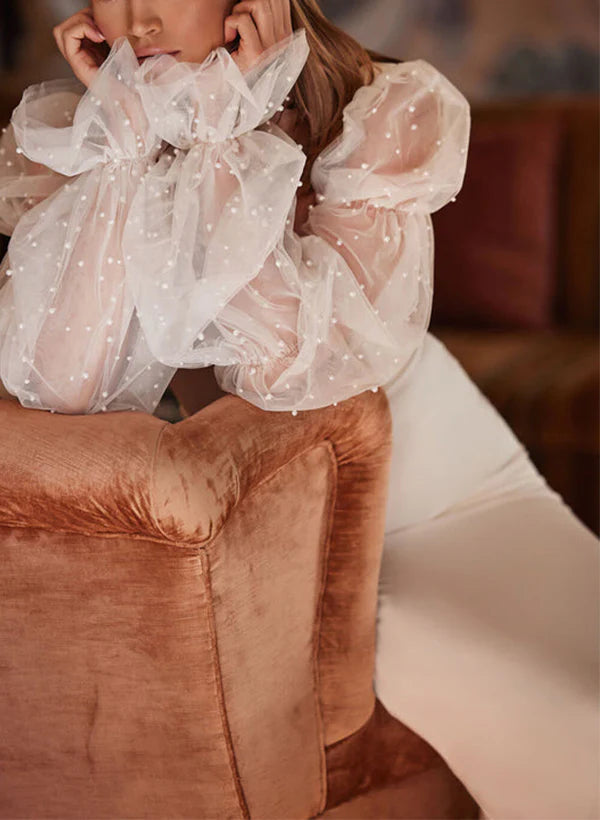 Lace Trumpet/Mermaid Square Neckline Elastic Satin Wedding Dresses Long Sleeves Elegant - White