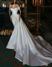 Off-The-Shoulder Sleeveless Court Train Wedding Dresses With Beading