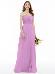 A-Line Bridesmaid Dress Illusion Neck Sleeveless Illusion Detail Floor Length Chiffon / Floral Lace with Sash / Ribbon / Appliques