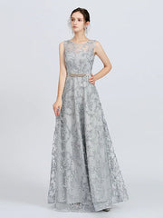 A-Line Jewel Neck Floor Length Lace Bridesmaid Dress with Sash Ribbon Appliques - Show As picture