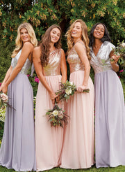 A-Line/Princess V-Neck Floor-Length Long Bridesmaid Dresses With Sequins