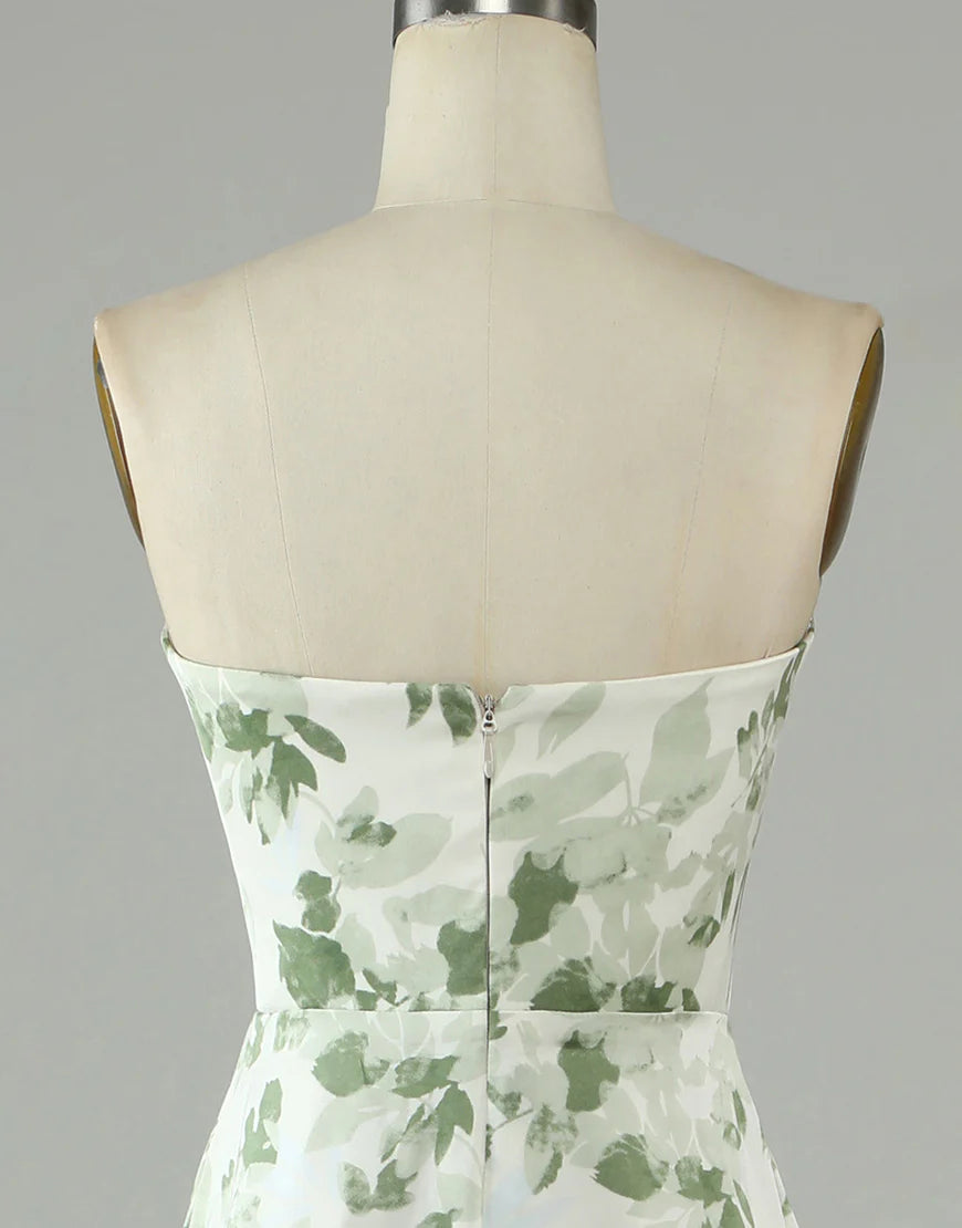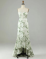 A Line Strapless Print High Low Asymmetric Bridesmaid Dress