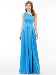 Ball Gown / A-Line Bridesmaid Dress One Shoulder Sleeveless Floor Length Chiffon with Sash / Ribbon / Pleats / Split Front