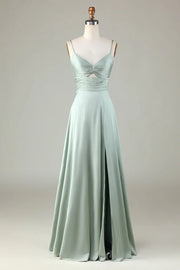 Keyhole thin shoulder strap matcha slit bridesmaid dress