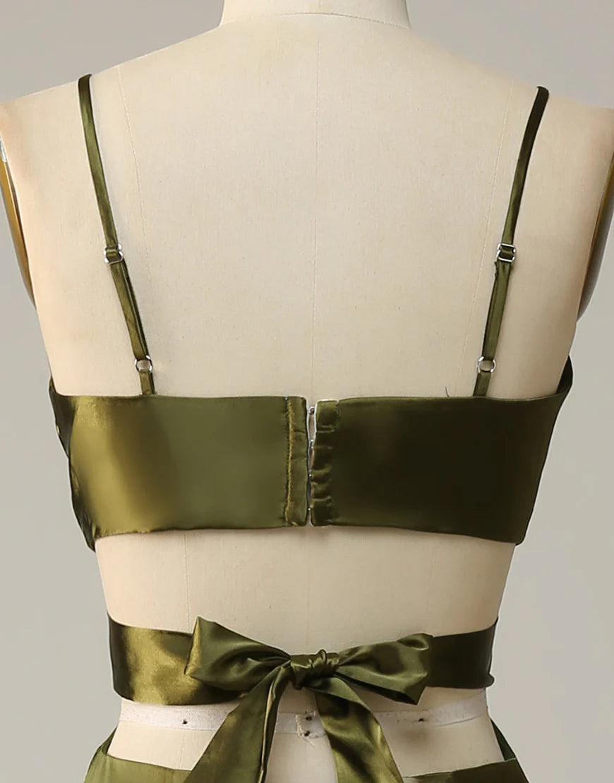 Olive Long Spaghetti Straps Cut Out Bridesmaid Dress with Slit