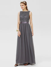 Sheath / Column Bateau Floor Length Chiffon / Floral Lace Bridesmaid Dress with Lace / Sash / Ribbon / Pleats - Charcoal Grey