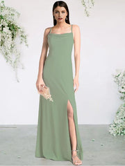 Sheath / Column Bridesmaid Dress Spaghetti Strap Sleeveless Sexy Floor Length Chiffon with Split Front - Show As picture