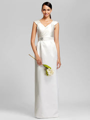 Sheath / Column Bridesmaid Dress V Neck Sleeveless Elegant Floor Length Satin with Sash / Ribbon / Beading - Show As picture