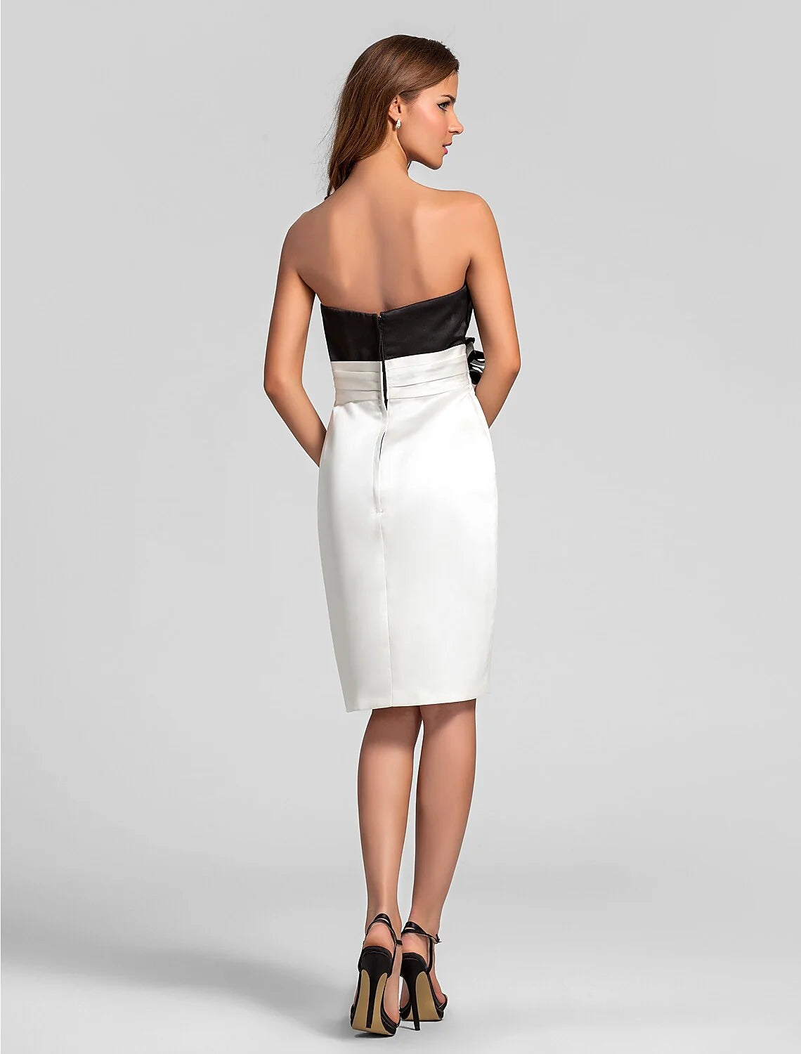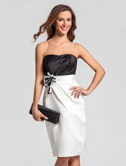 Sheath / Column Strapless Knee Length Satin Bridesmaid Dress Backless with Ruched - Show As picture
