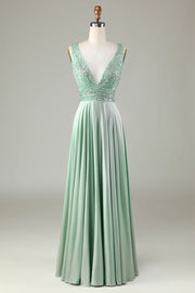 Sleek Glitter Sparking Low V-Neck Matcha Bridesmaid Dress with Sequins - Matcha