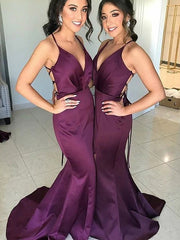 Trumpet/Mermaid Satin Ruched V-neck Sleeveless Sweep/Brush Train Bridesmaid Dresses - As Picture