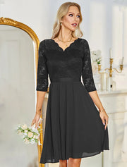 A-Line Cocktail Dresses Homecoming Dresses Vintage Dress Wedding Guest Party Wear Knee Length Half Sleeve V Neck Chiffon with Pleats