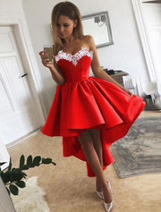 A-Line Cocktail Dresses Minimalist Dress Homecoming Graduation Asymmetrical Sleeveless Strapless Satin with Appliques - Red