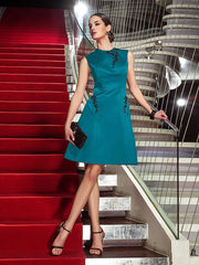 A-Line Elegant Homecoming Cocktail Party Valentine's Day Dress Jewel Neck Sleeveless Knee Length Satin with Beading Appliques