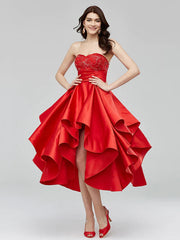 A-Line Fit & Flare Open Back Homecoming Cocktail Party Prom Dress Sweetheart Neckline Sleeveless Asymmetrical Satin with Beading Appliques