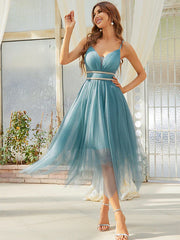 A-Line Flirty Cute Cocktail Party Dress V Neck Sleeveless Asymmetrical Tulle with Pearls Tier