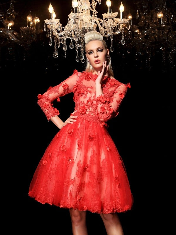 A-Line/Princess Sheer Neck Applique 3/4 Sleeves Short Net Cocktail Dresses