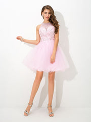 A-Line/Princess Sheer Neck Beading Sleeveless Short Net Cocktail Dresses Homecoming Dresses