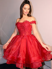 Ball Gown Off-the-Shoulder Cut Short With Applique Organza Homecoming Dresses