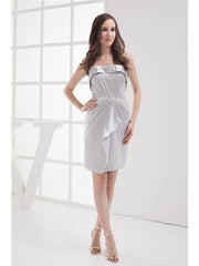 Elegant Cocktail Party Dress Strapless Sleeveless Knee Length Stretch Satin with Beading - Light gray