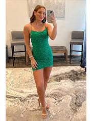 Sheath / Trumpet Cocktail Dresses Sexy Dress Homecoming Short / Mini Sleeveless Spaghetti Strap Tulle Backless with Appliques - Show As picture