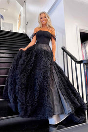 A-Line Off the Shoulder Sweep/Brush Train Dresses Ruffle Prom Dress with Slit