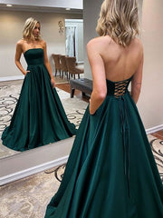 A-Line/Princess Satin Ruffles Strapless Sleeveless Sweep/Brush Train Dresses - US 2 / UK 6 / EU 32