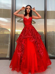 A-Line/Princess Straps Tulle Sleeveless Floor-Length Applique Dresses