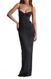 Elegant slim shoulder strap off shoulder tight corset satin backless and ground length prom dress Evening Dress
