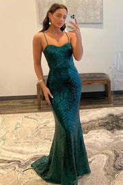 Mermaid Spaghetti Straps Sequins Long Evening Dresses