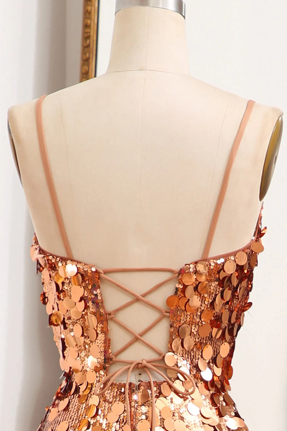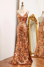 Mermaid Spaghetti Straps Sparkly Sequin Prom Dress With Slit