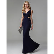 Mermaid / Trumpet Cut Out Beautiful Back Elegant Prom Formal Evening Dress V Neck Sleeveless Floor Length Spandex with Pleats - US 2 / UK 6 / EU 32