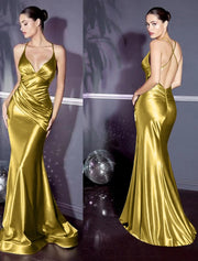Mermaid / Trumpet Evening Gown Elegant Dress Engagement Sweep / Brush Train Sleeveless V Neck Satin with Criss Cross Ruched - US 2 / UK 6 / EU 32