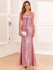Mermaid / Trumpet Evening Gown Elegant Dress Evening Party Prom Floor Length Sleeveless V Neck Bridesmaid Dress Sequined Backless with Sequin