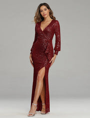 Mermaid / Trumpet Evening Gown Sparkle Dress Party Wear Floor Length Long Sleeve V Neck Sequined with Sequin