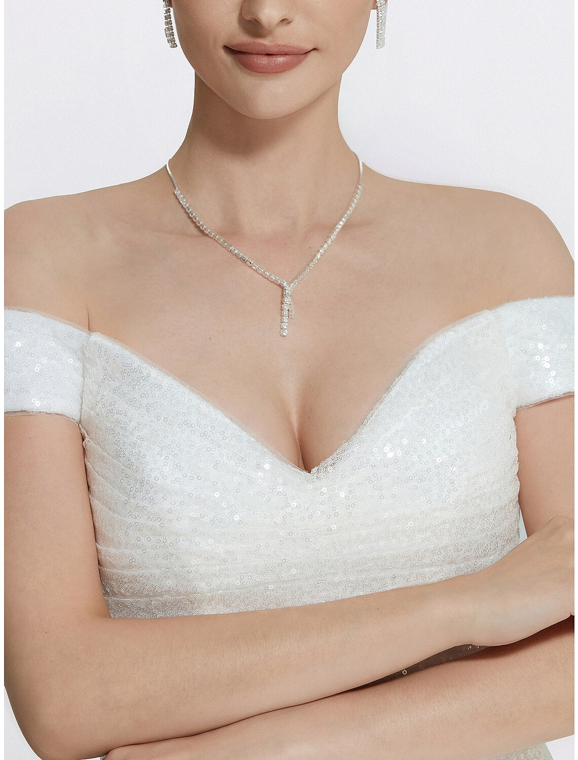 Mermaid / Trumpet Evening Gown Sparkle Dress Wedding Black Tie Floor Length Short Sleeve Off Shoulder Sequined with Slit