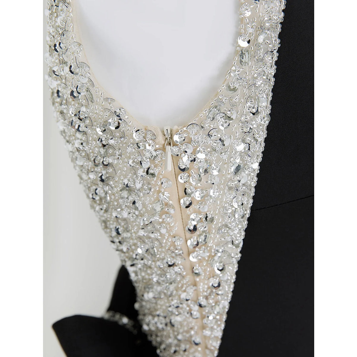 Mermaid / Trumpet Sparkle & Shine Formal Evening Dress Scoop Neck Sleeveless Court Train Jersey with Bow(s) Beading - US 2 / UK 6 / EU 32
