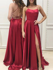 A-Line Evening Gown Sexy Dress Formal Sweep / Brush Train Sleeveless Spaghetti Strap Charmeuse with Slit