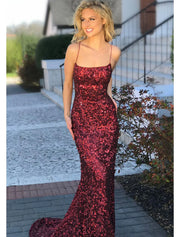 Sheath/Column Square Neckline Sleeveless Sweep Train Sequined Dress