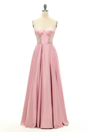 Strapless Blush Beaded Sweetheart Long Prom Dress