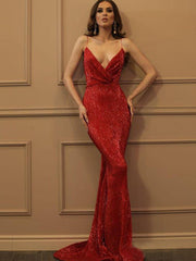 Trumpet/Mermaid Sleeveless Spaghetti Straps Sweep/Brush Train Sequins Dresses