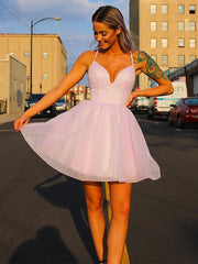 A-Line/Princess Lace Ruffles V-neck Sleeveless Short/Mini Dresses