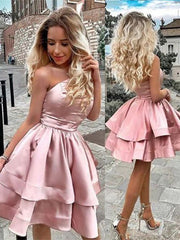 A-Line/Princess One-Shoulder Charmeuse Ruffles Sleeveless Short/Mini Homecoming Dresses