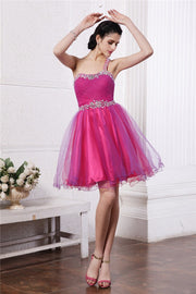A-Line/Princess One-Shoulder Sleeveless Beading Short Organza Cocktail Dresses