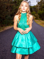 A-Line/Princess Satin Sleeveless Beading Jewel Short/Mini Homecoming Dresses