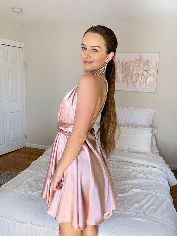 A-Line/Princess Silk like Satin Sleeveless V-neck Ruffles Short/Mini Homecoming Dresses